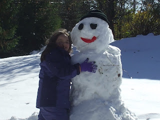 Here is my Victoria with her snowman in front of our home.