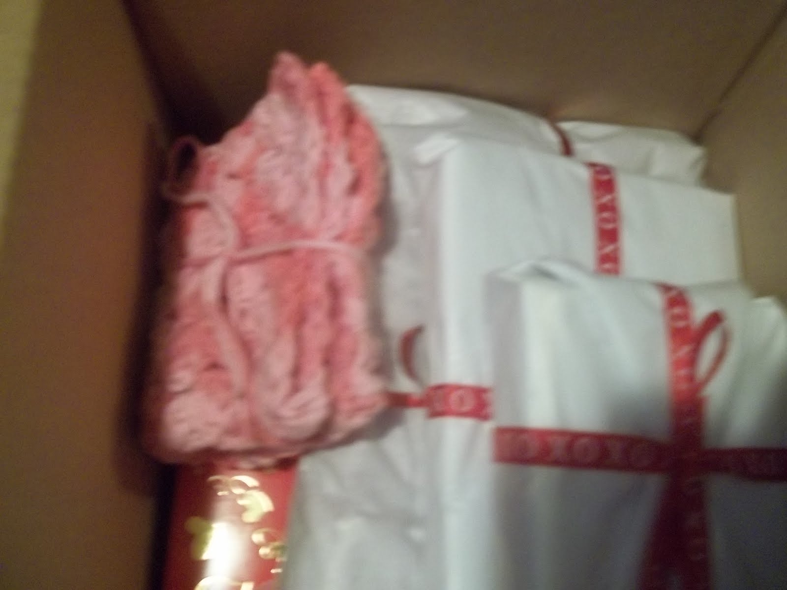 I feel really silly because I didnt take pictures of what I sent her. Oh yeah I took a picture of the box filled with gifts...DUH!! Why I did that I will never know so I am hoping that she will take pics and if she didn't thats okay too.