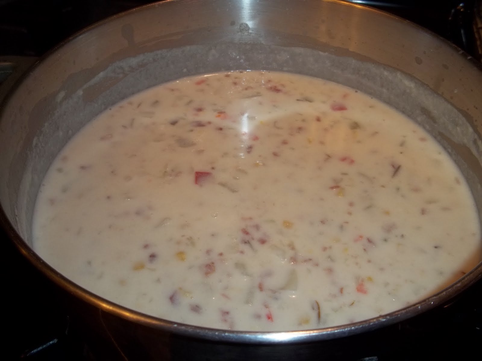 A nice pot of hot creamy corn chowder is one nice way to warm them cold bones.